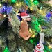 Made by hand from genuine tan leather, red and white leather for Santa Hat. Hanging thong is made from faux suede. Decorated on one side only with the reverse being plain leather.