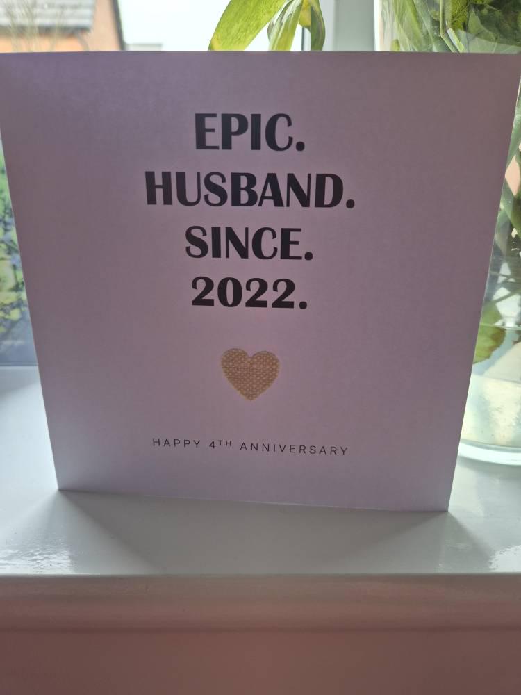 4th Wedding Anniversary Card Linen Anniversary Epic Husband Wife Couple Him Her Handmade UK.